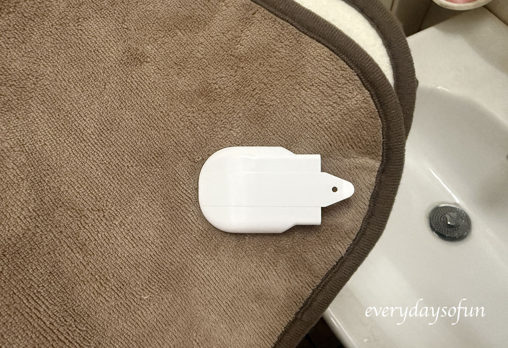 清潔前我們記得先將溫控器與毯子分離,按下卡榫就能輕鬆取下,若是局部髒汙,建議拿軟刷做局部清潔,像我是拿軟毛牙刷沾取清水,在髒汙處輕刷,避免大力搓揉,然後拿洗臉巾吸一下水,再平鋪風乾。