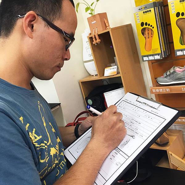 接下來就是預約時間等待成品,到場試穿後會進行短時間的確認,店長會藉由穿上鞋墊後的站姿、走路姿勢觀察及提問,很神奇的只用眼睛就能說出體感疼痛的位置或是狀況,或許這是物理治療師背景的專業XD?