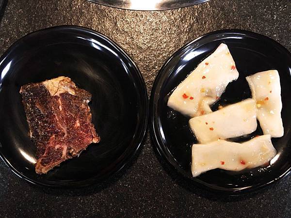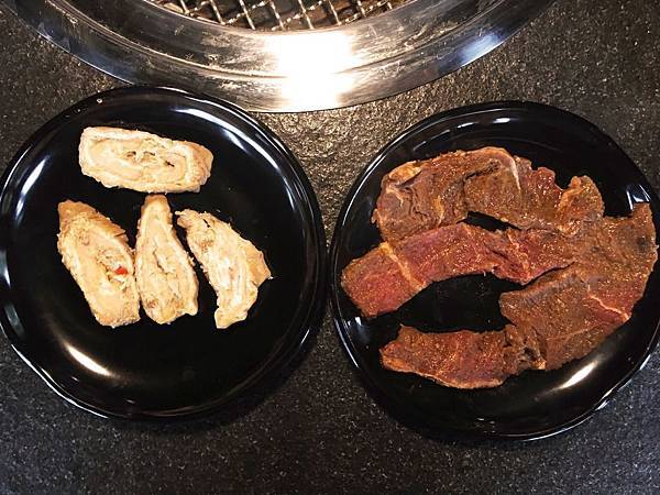 肉品以牛豬雞為基底,除了可以吃原味的以外,也有部份是先醃漬過的風味,麻辣、薑汁、咖哩甚至還有三杯口味的,這個滿特別的,其他燒肉店比較少見。如果沒有不吃的肉,就點滿它吧!(當然不是一次)
