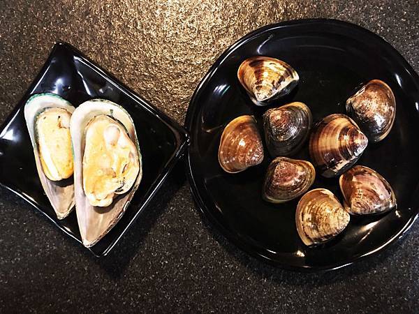 海鮮部份除了蝦子、蛤蜊、花枝、魚下巴等,還有貝類及魚類。吃蝦子最容易感受鮮度了,這些料理聞起來基本都沒啥腥味,應該都處理得還不錯。