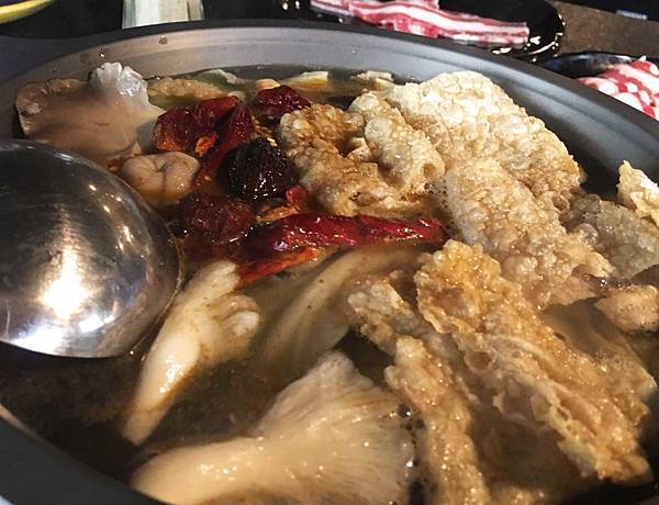 一開場的小火鍋也有湯底可以選,基本昆布、泡菜及天香麻辣,當天我們點的是麻辣鍋,截至菜品都送上之後,妹子桌上的火鍋依然是白湯一鍋,後來跟店員反應後又等了好一陣子才來加上一匙應該是麻辣醬的東西,應該也是試營運惹得禍XD