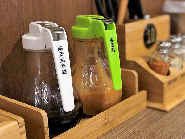 這就要進入正題啦,今天享用的是最頂級的好海派餐點,用餐前看到每張桌上都會備有兩種醬料及三種調味粉,分別是燒肉專用的特調【燒肉蘋果醬】,沾肉吃起來鹹甜鹹甜;海味專用的【味增醬】,搭配蝦子或是干貝都可以。