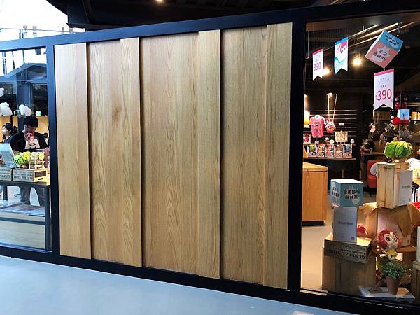從一樓入館左手邊是DIY教室,右手邊則是滿大一片的用餐區,不得不誇獎一下這裡的風格,大量使用木質與黑色的設計,好有質感啊,很難跟阿豬豬聯想到一塊呢。